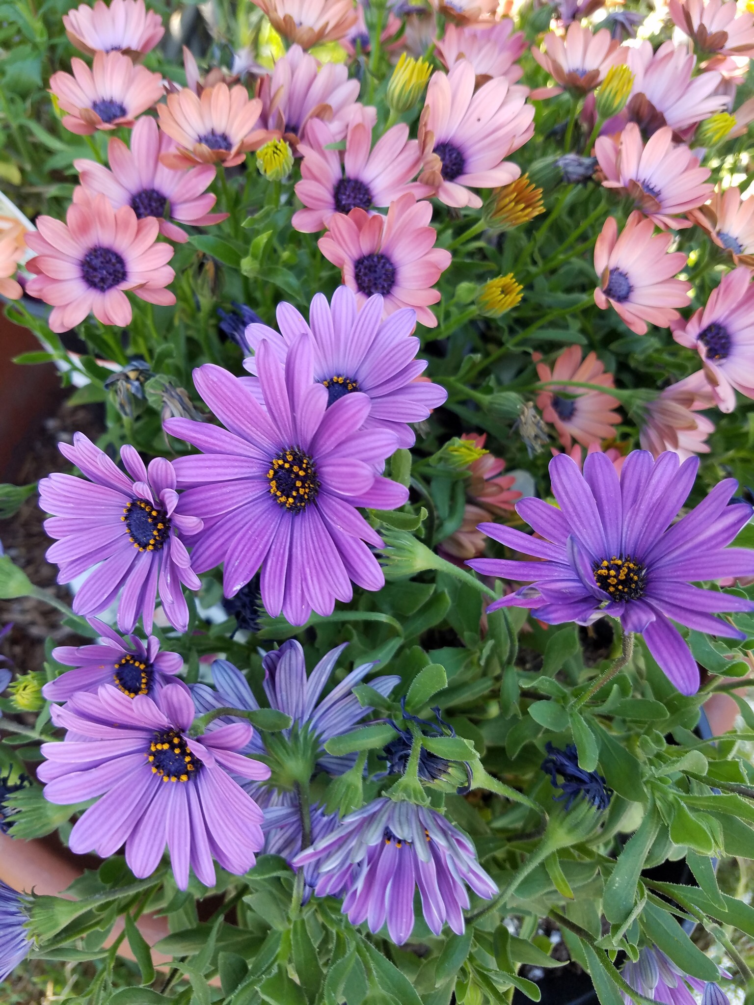 Saturday I spent time cleaning up the garden and planting a few colors of daisies that I picked up at the home improvement store. I LOVE color!